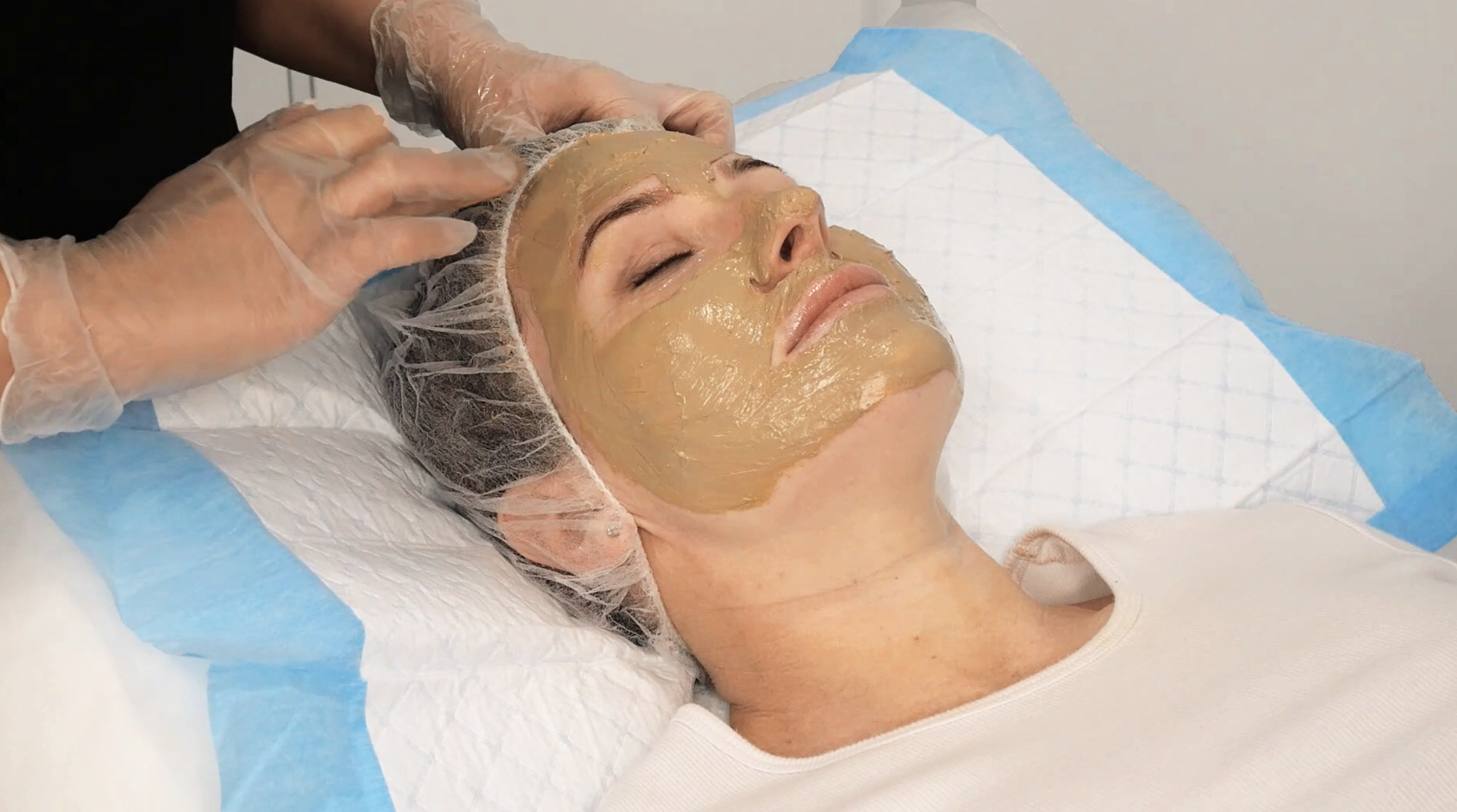 The thick, clay coloured cosmelan® 1 mask will be applied and must be left on at home for a period of 8-12 hours. The duration will be dependent on Fiztpatrick type and skin condition. During the treatment, whilst the mask is on, a non-active water mist, will need to be used to keep the product moist (not wet) to ensure it does not dry ou. This product can be purchased at most chemists.